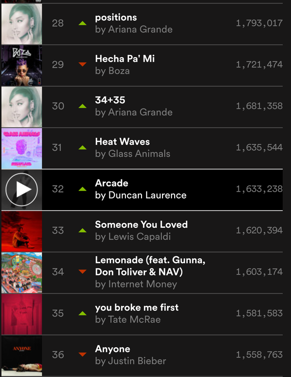 Arcade hala Spotify Türkiye viral listesinde çıkıyor, bizde de baya dinlendi he.1 point