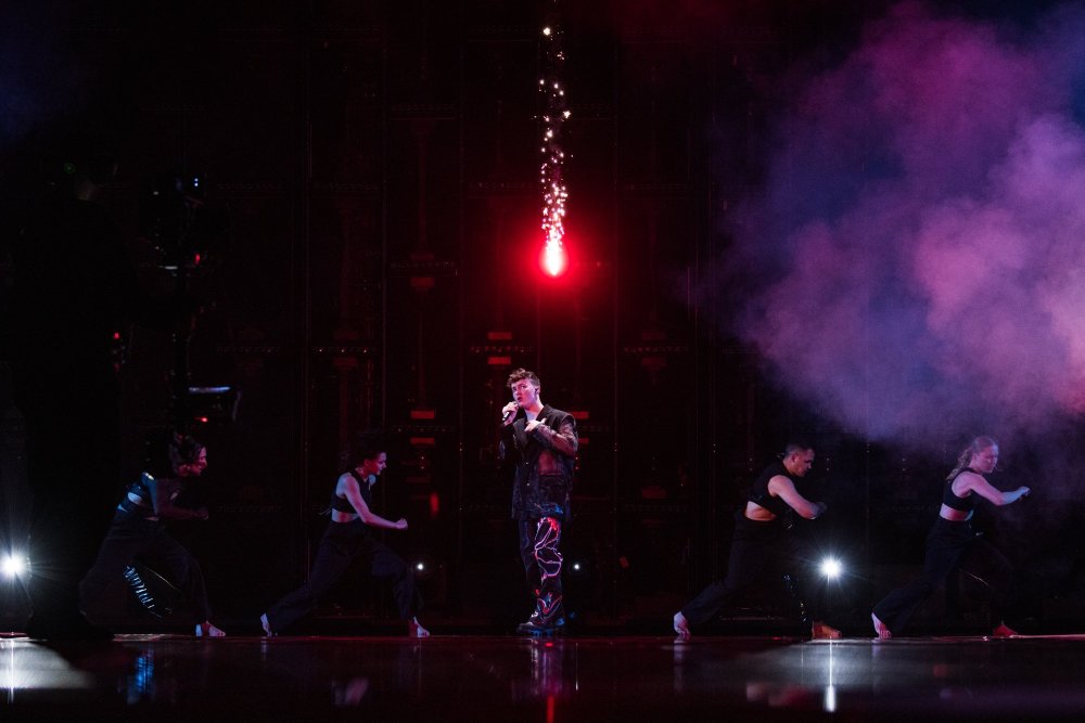 SIRBİSTAN İLK PROVASINI GERÇEKLEŞTİRDİ! Sahneleme açısından Luke, Sırbistan Ulusal Finalinden dev bir yatak ve uzun hortumlar taşıyan dört maskeli dansçı getirdi. Bu hortumlardan duman çıkıyor. Titreşen bas ve video oyunu grafikleriyle her şey karanlık, gerçeküstü ve hipnotize edici – izleyicilerin kesinlikle unutamayacakları bir performans. Performansında duman da göreceğiz. Son provada Luke, sadece son koro için arka dansçılarının giydiği sırt çantalarından duman çıkarıyor.1 point