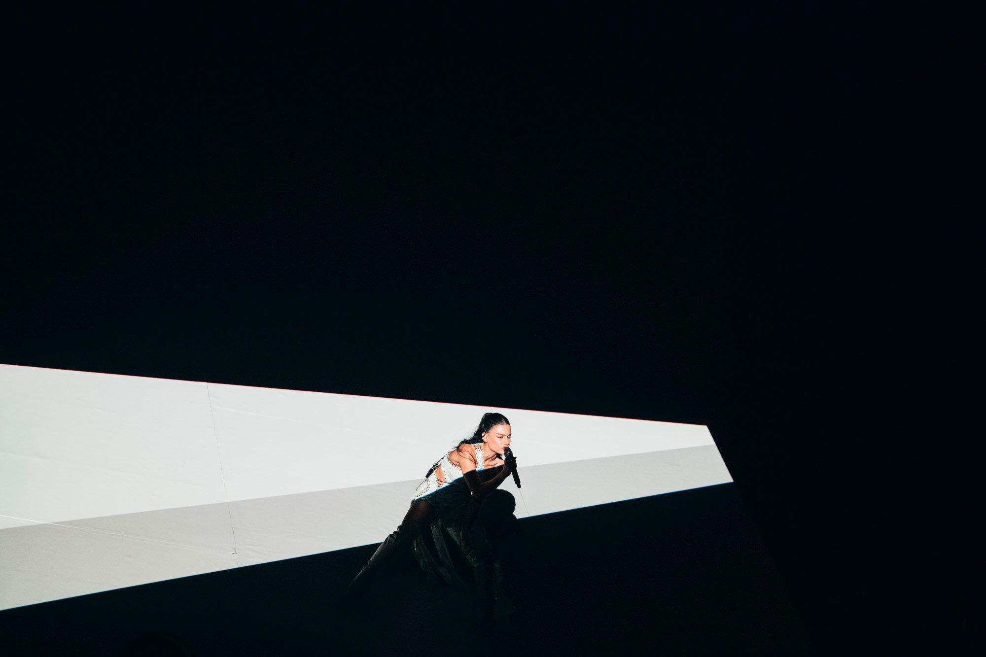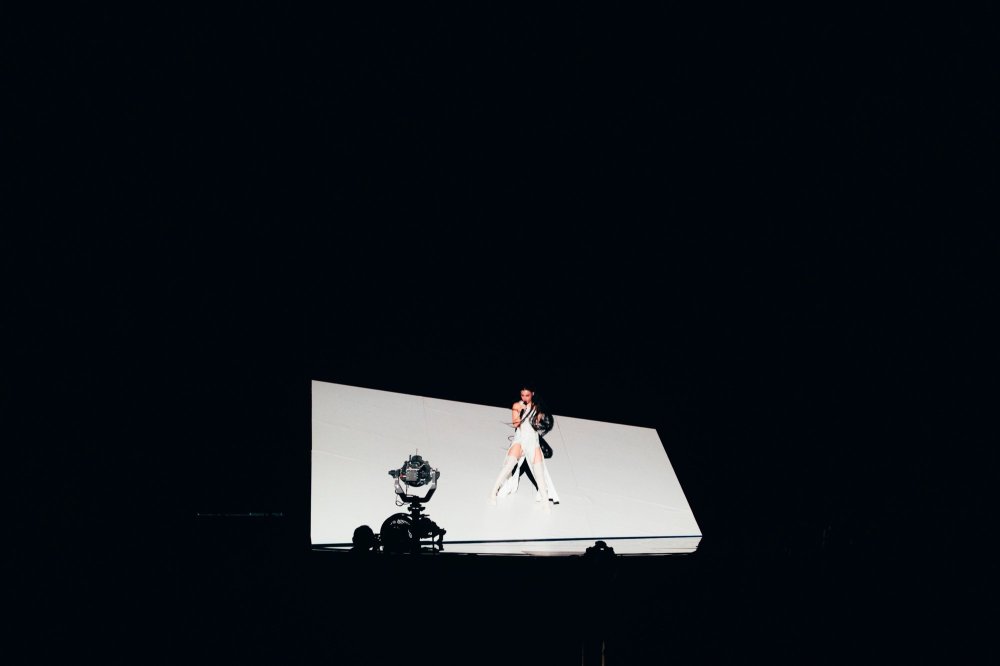 Performans, Brunette’in dönen grafiklerin fonunda sahnenin önüne dikilmiş eğimli bir yapı üzerinde uzandığı yumuşak bir piyano baladı olarak başlıyor. Ardından, seyirci rüya gibi sallanırken, Brunette şiddetli bir rap ile araya giriyor ve her şey ateş alıyor. Brunette’in inanılmaz bir sahne hakimiyeti ve güçlü bir vokali var ve bu sahneleme, tempo değişimleri sırasında ışığın ve grafiklerin gerçekten zekice kullanılasını saglıyor.1 point