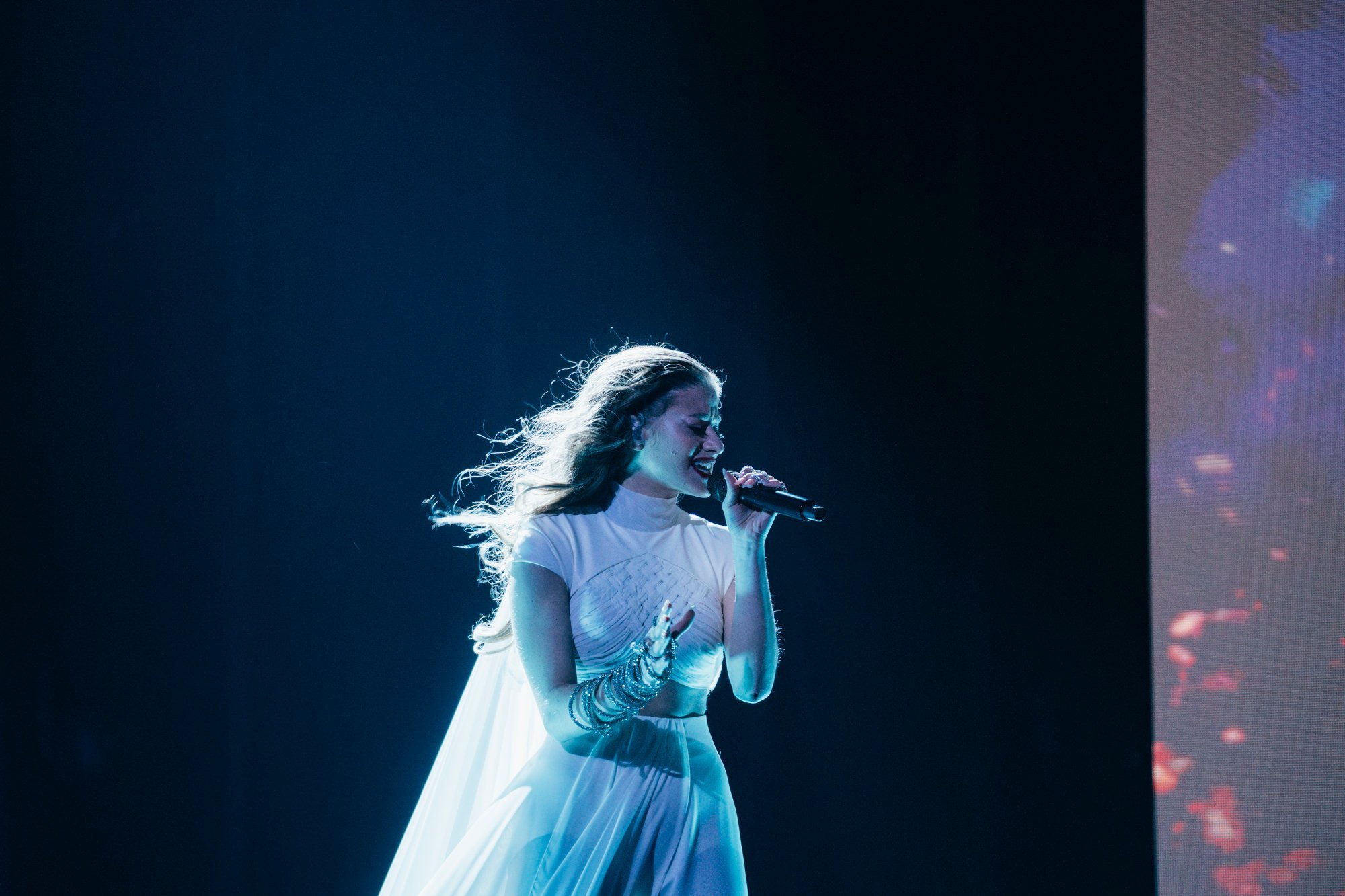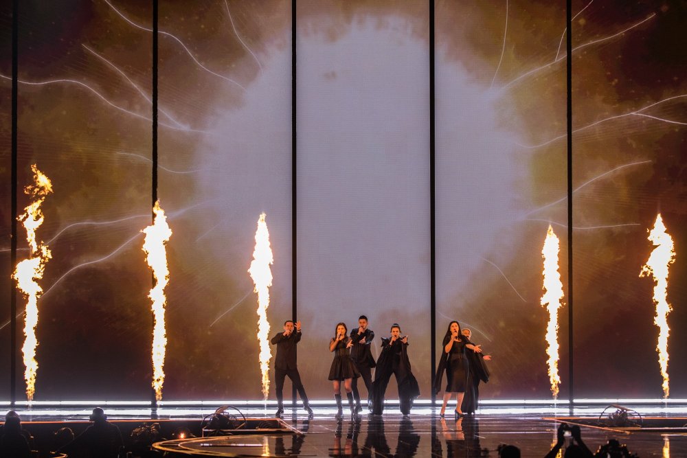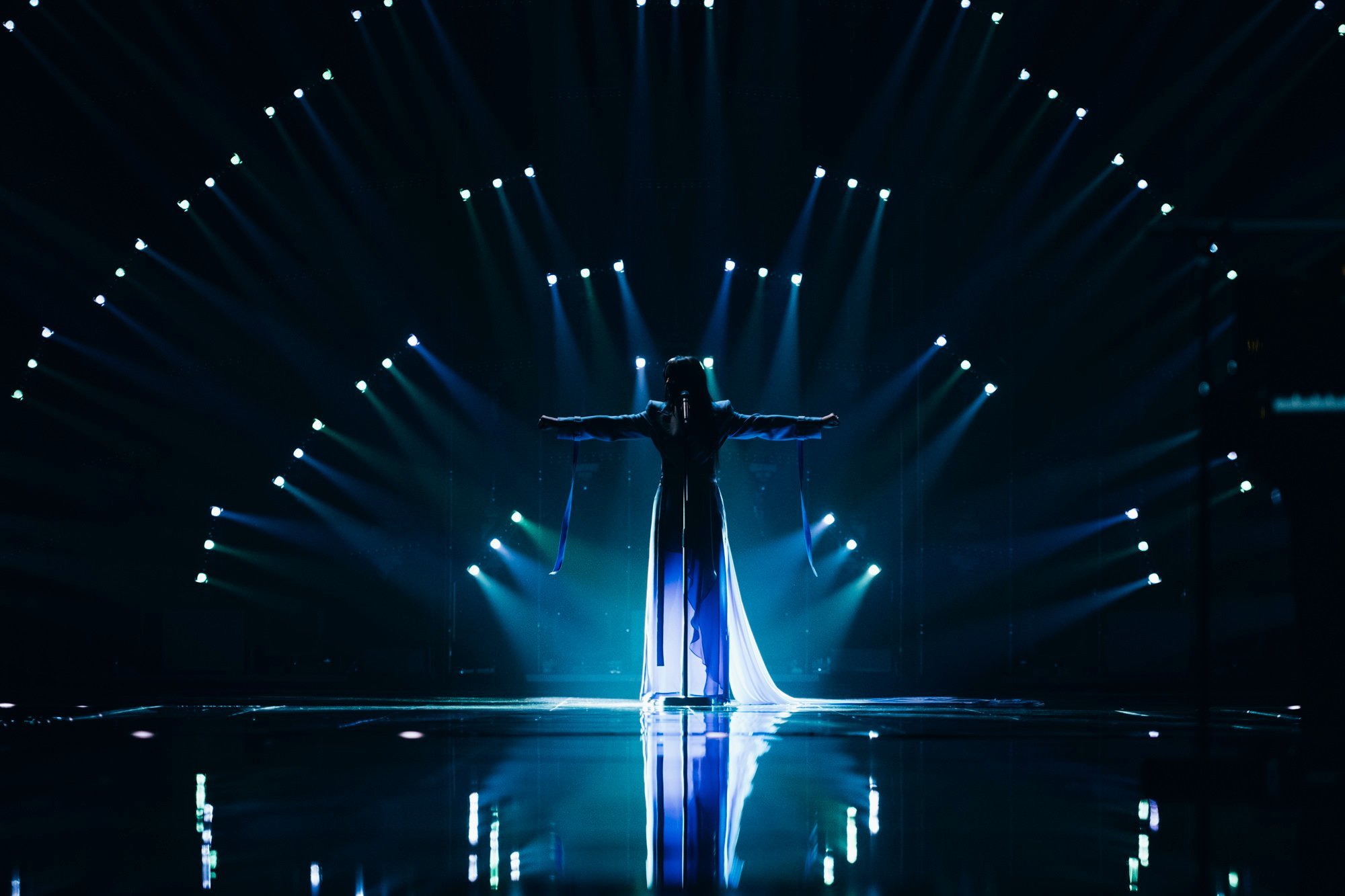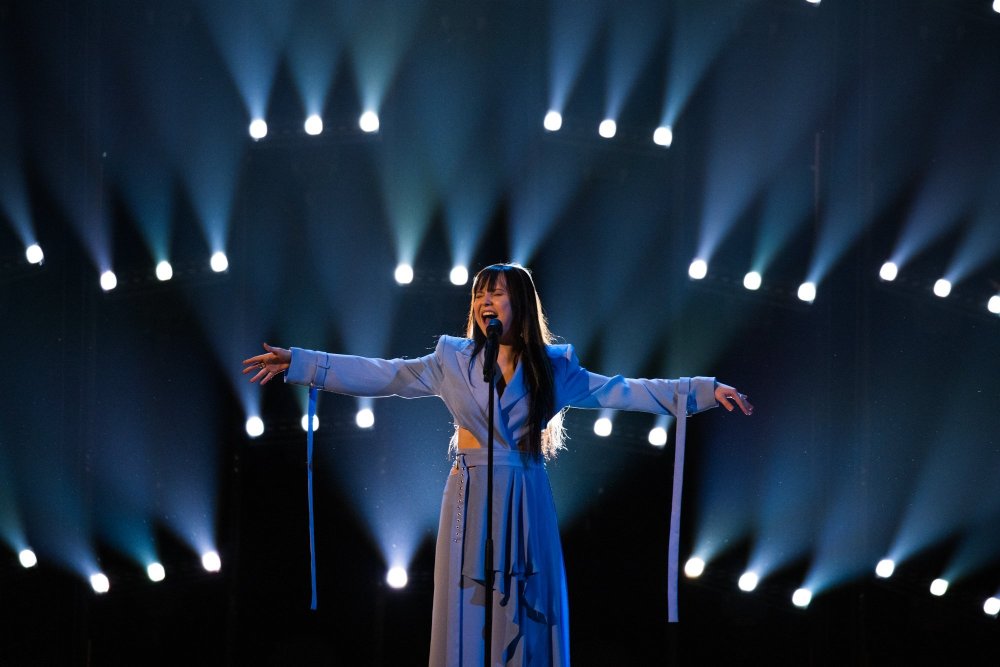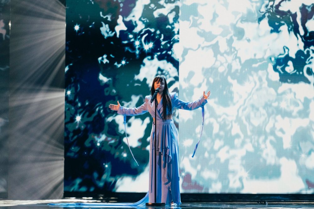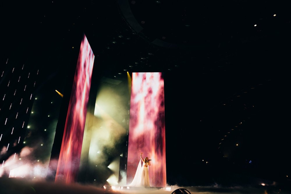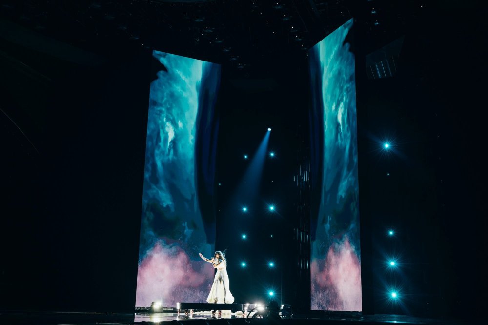 Performansta rüzgar makinesi kullanılıyor… Bu, Iru’nun şeffaf beyaz elbisesine, Echo’nun klibine çok benzeyen bazı dramatik hareketler ekliyor. Şarkının tamamı, dönen duman ve fırtınalı havadan oluşan bir LED fonuyla, sahnenin ortasındaki yükseltilmiş bir platformda icra ediliyor. Tüm bunlar hep birlikte muazzam bir atmosferik performans yaratıyor ve Iru’nun nefes kesen sesi şimdiden Liverpool arenasında adeta kıyametleri koparıyor.1 point