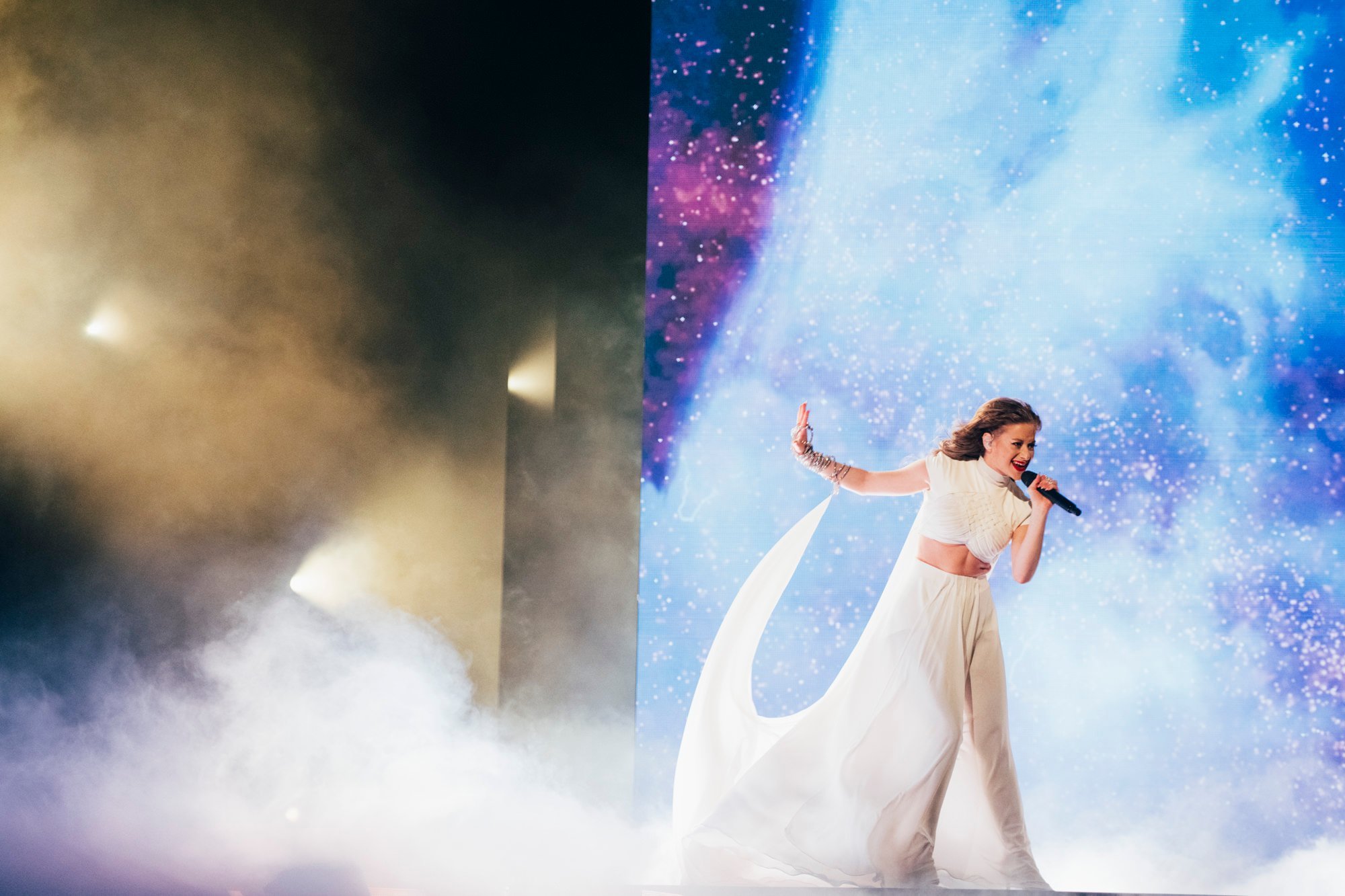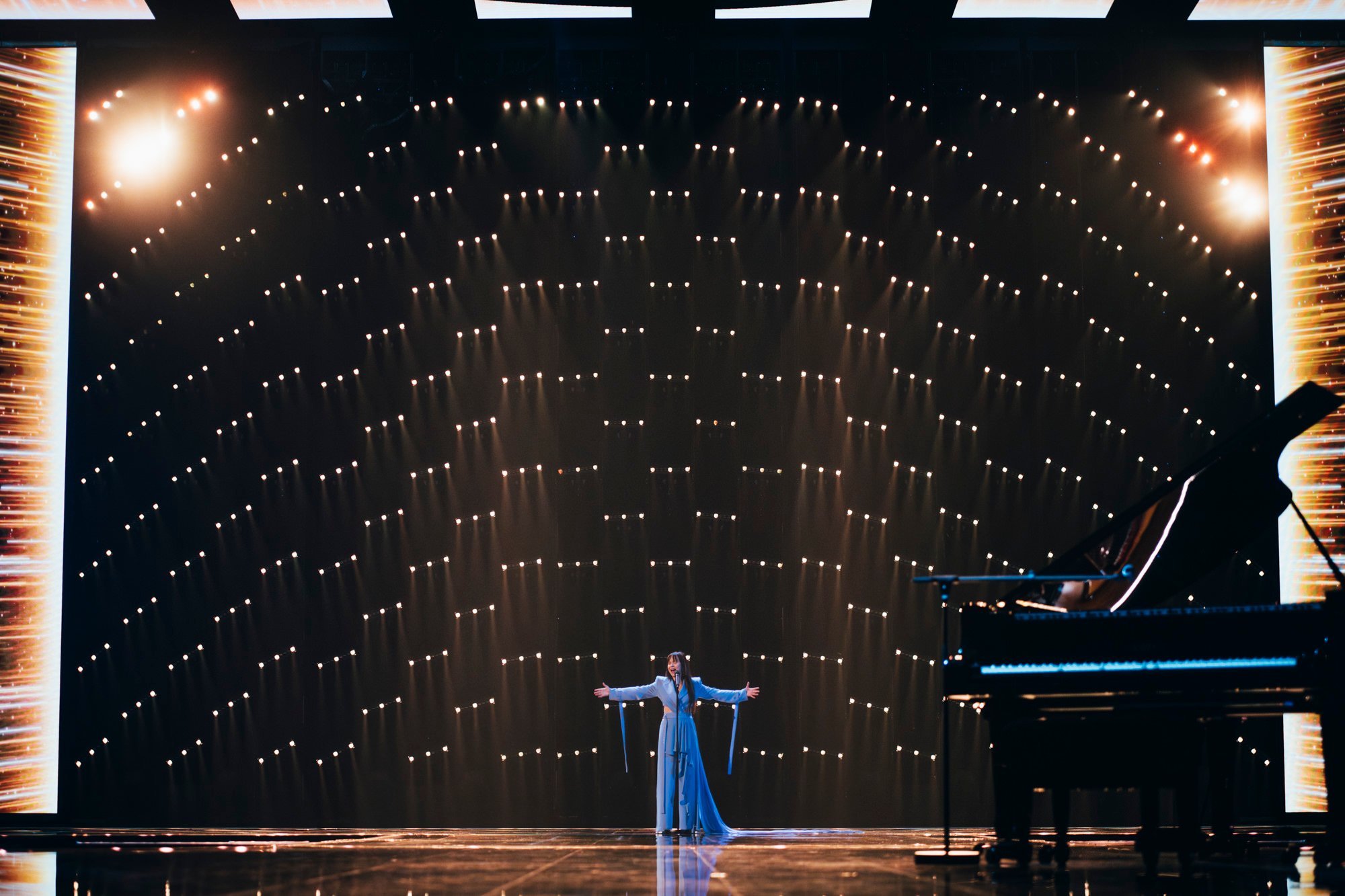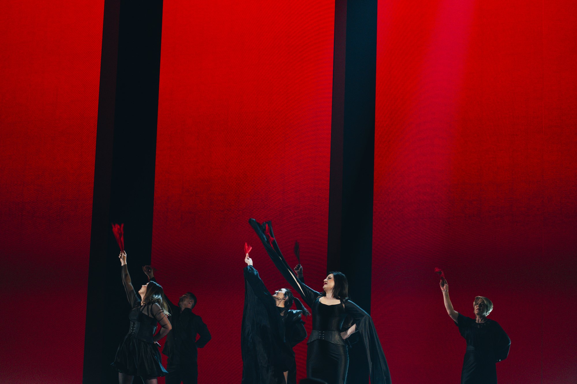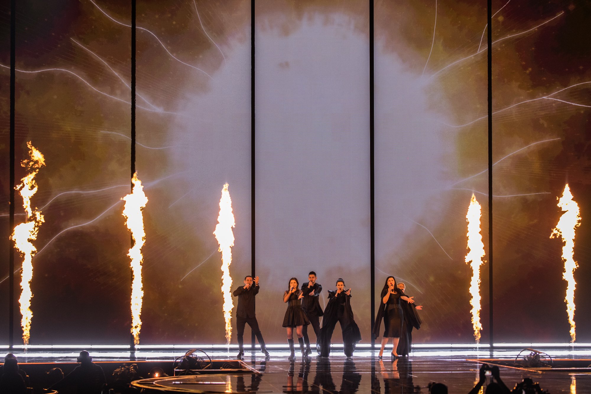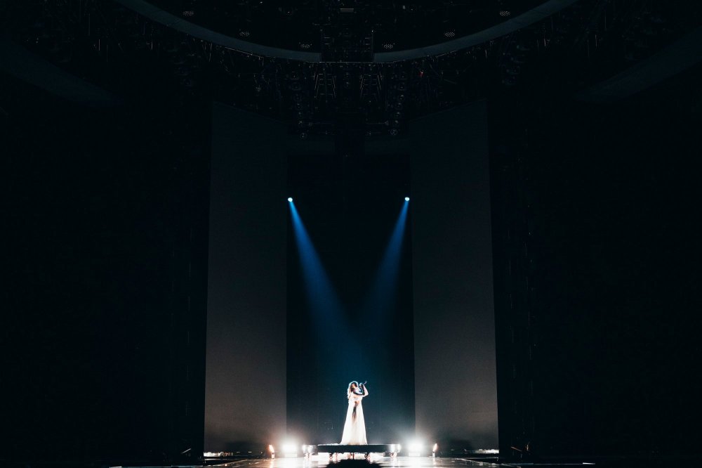 Performansta rüzgar makinesi kullanılıyor… Bu, Iru’nun şeffaf beyaz elbisesine, Echo’nun klibine çok benzeyen bazı dramatik hareketler ekliyor. Şarkının tamamı, dönen duman ve fırtınalı havadan oluşan bir LED fonuyla, sahnenin ortasındaki yükseltilmiş bir platformda icra ediliyor. Tüm bunlar hep birlikte muazzam bir atmosferik performans yaratıyor ve Iru’nun nefes kesen sesi şimdiden Liverpool arenasında adeta kıyametleri koparıyor.1 point