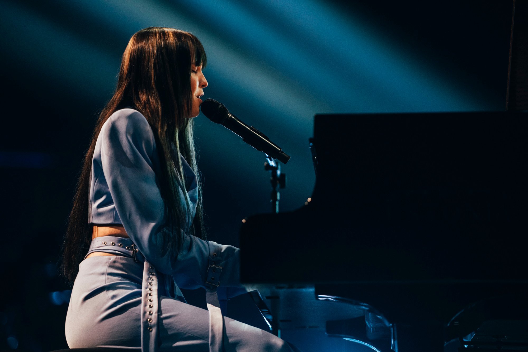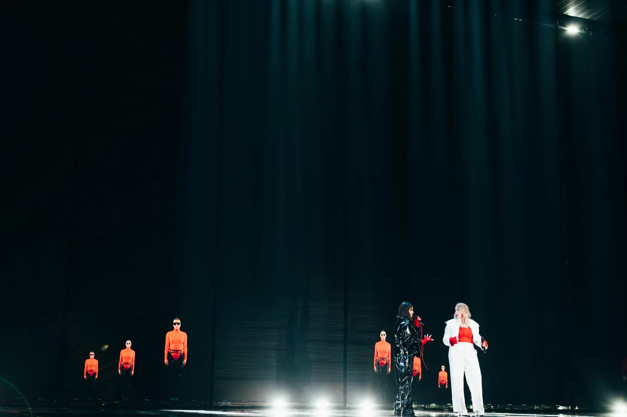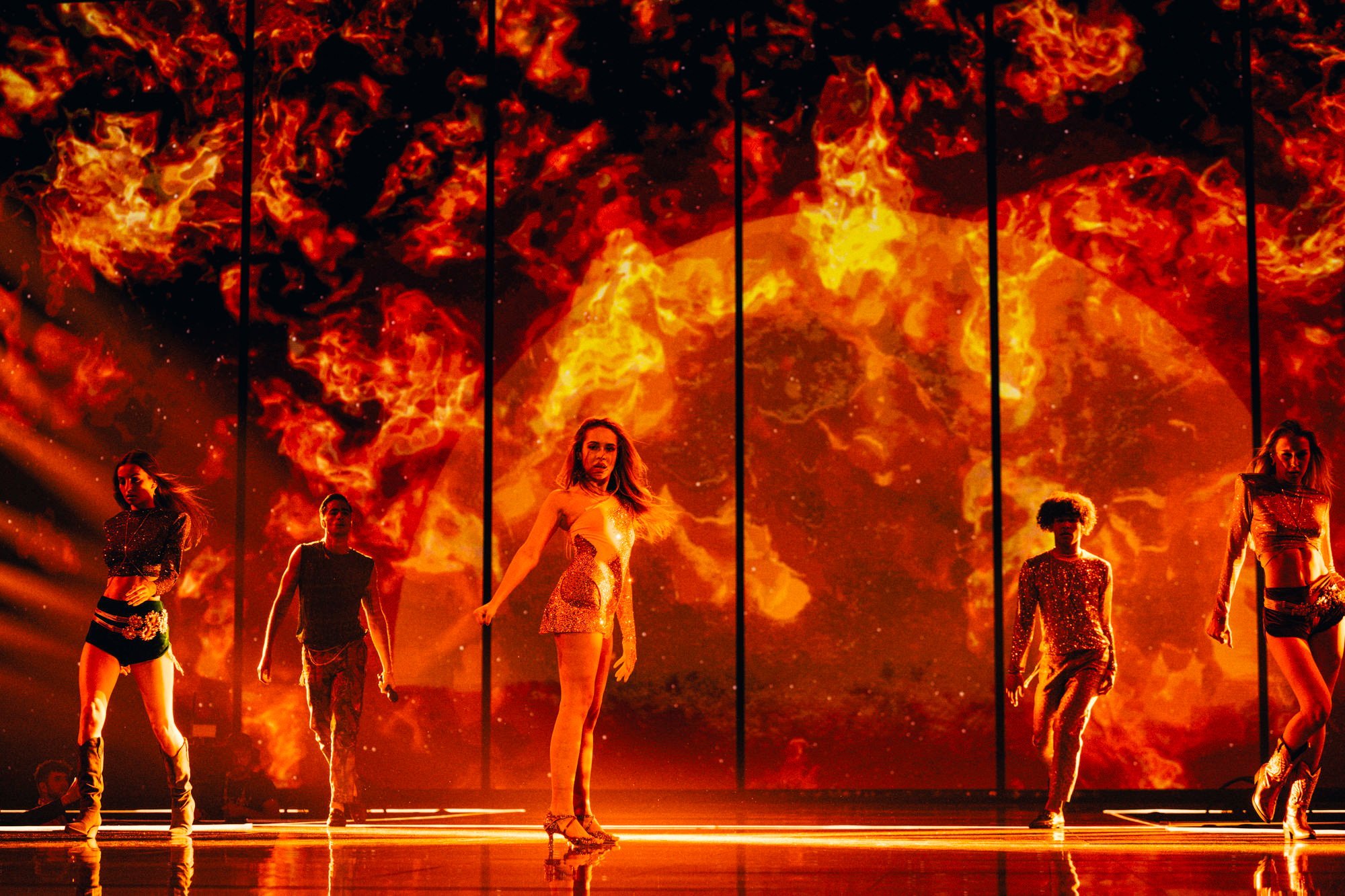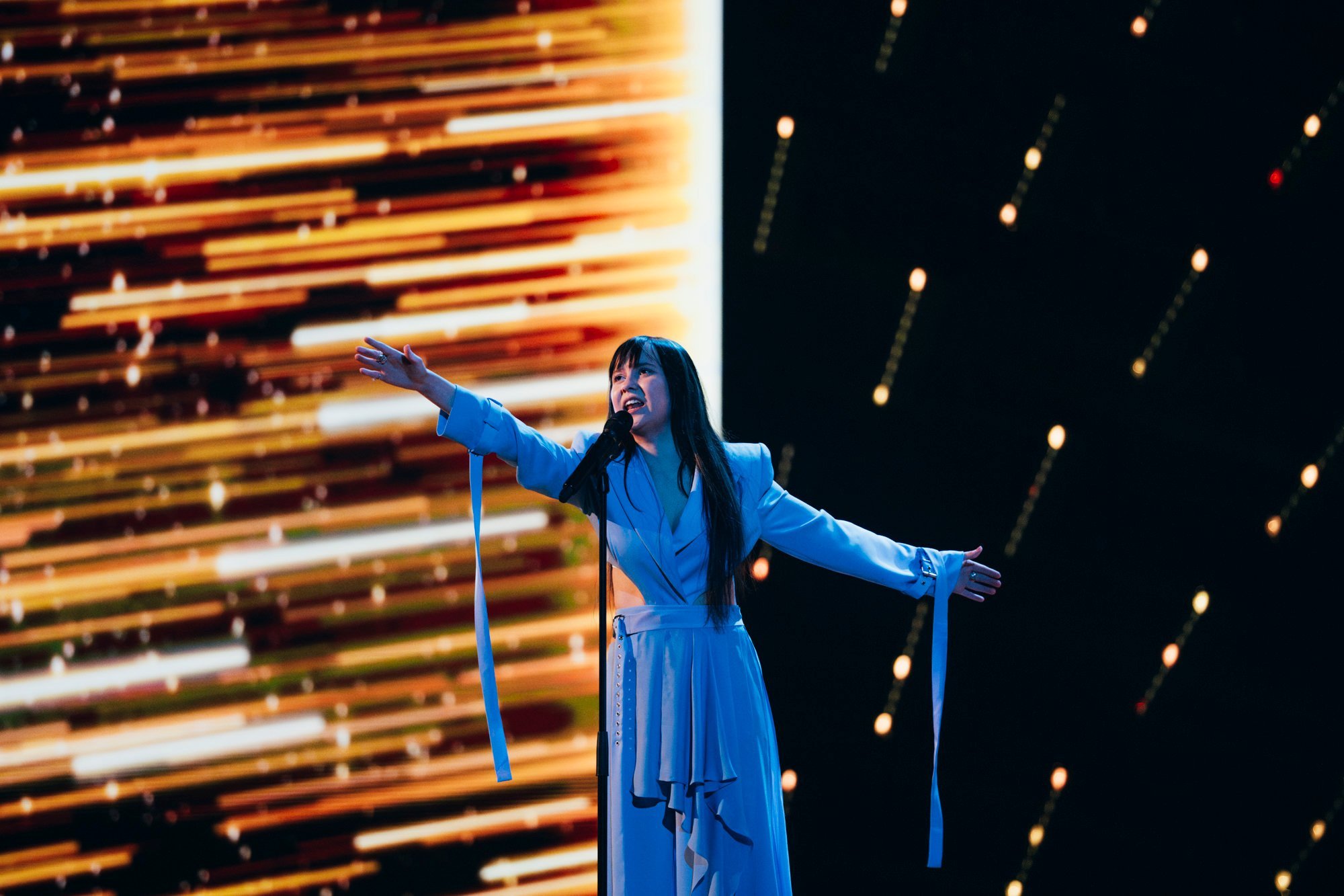 Performansta rüzgar makinesi kullanılıyor… Bu, Iru’nun şeffaf beyaz elbisesine, Echo’nun klibine çok benzeyen bazı dramatik hareketler ekliyor. Şarkının tamamı, dönen duman ve fırtınalı havadan oluşan bir LED fonuyla, sahnenin ortasındaki yükseltilmiş bir platformda icra ediliyor. Tüm bunlar hep birlikte muazzam bir atmosferik performans yaratıyor ve Iru’nun nefes kesen sesi şimdiden Liverpool arenasında adeta kıyametleri koparıyor.1 point