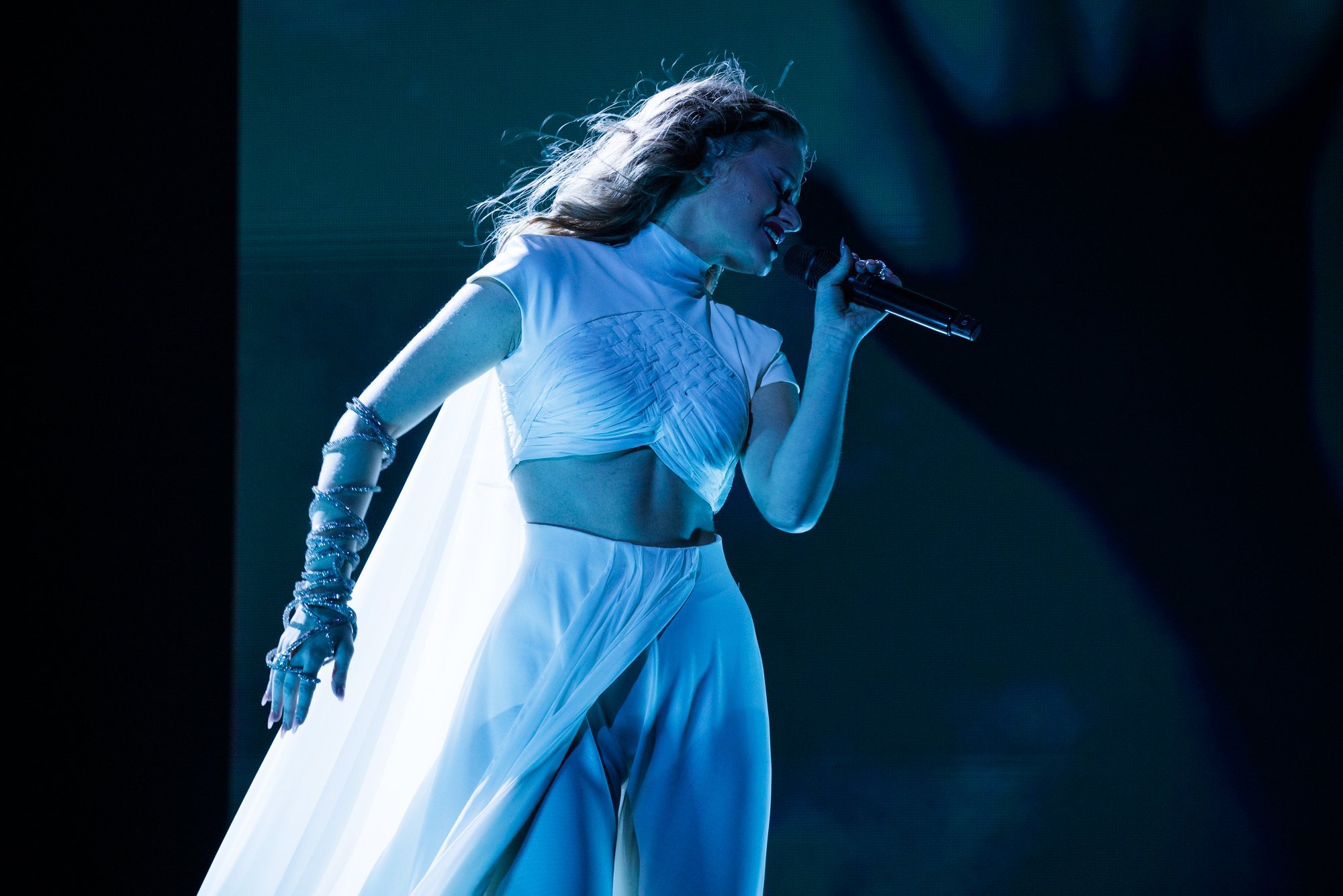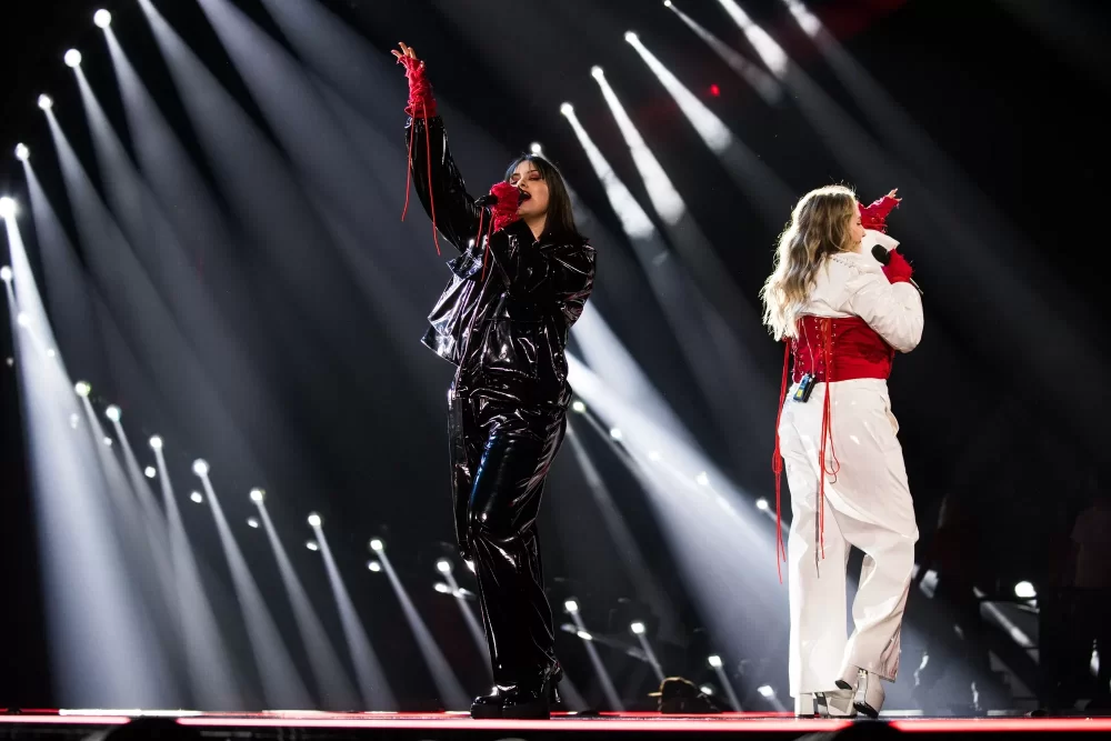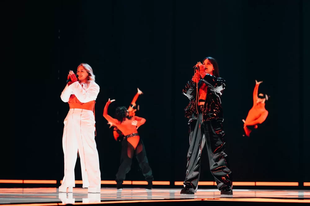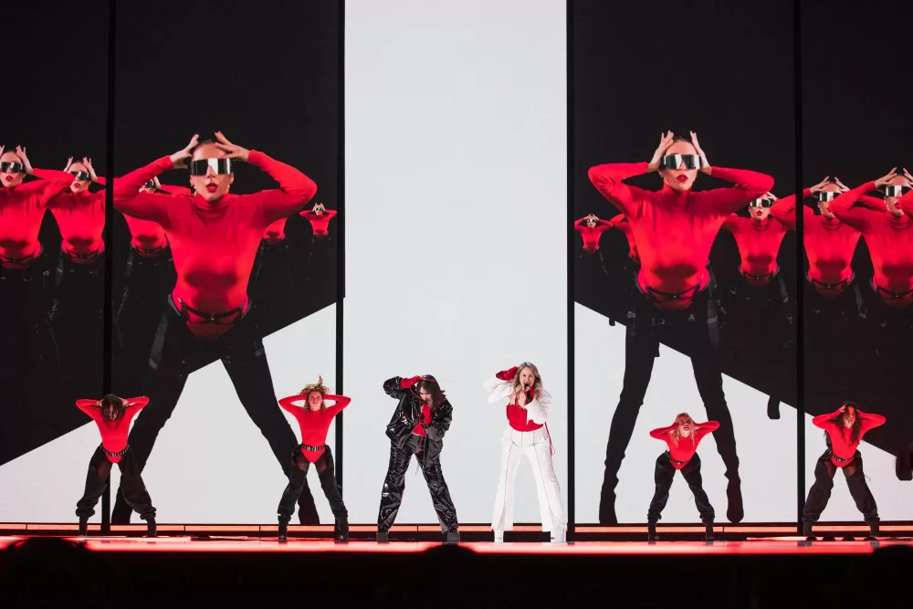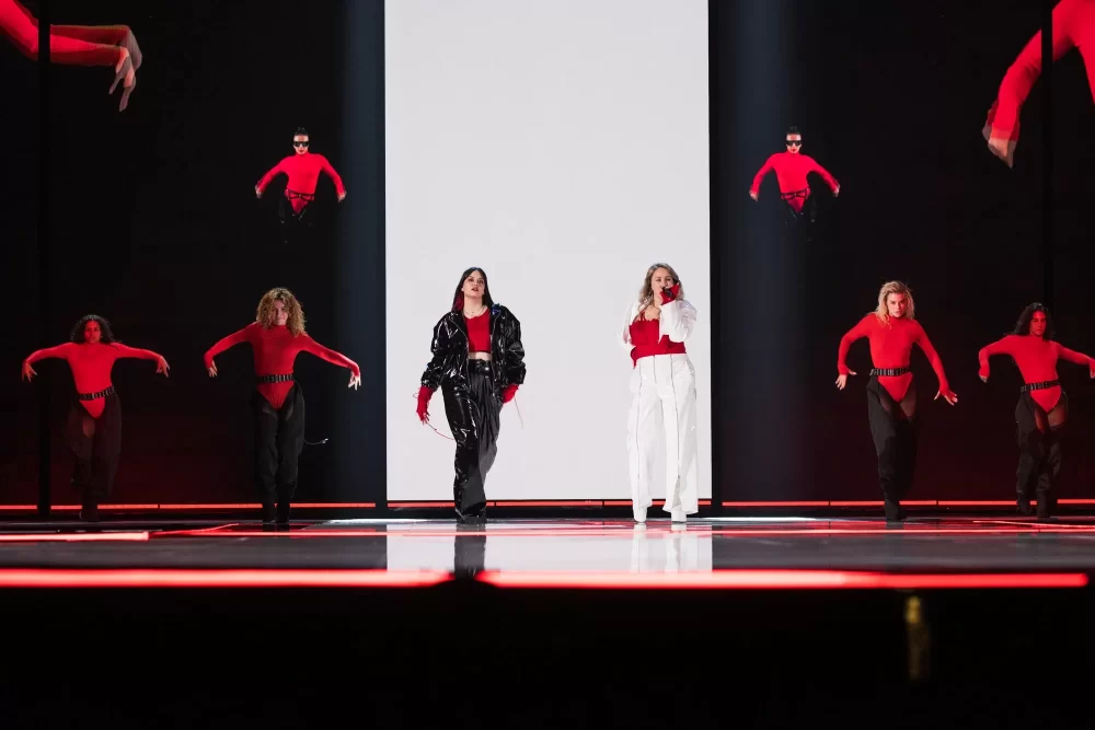 Victor, bu kadar genç yaşta bu kadar büyük bir arenada performans sergileyeceği için gergin olsa da, bunu göstermiyor. LED duvardaki birden fazla dev Victor tarafından destekleniyor, buna hem ses gücü hem de sahnedeki harika enerjisi de ekleniyor. İmzalı dans hareketi, önümüzdeki Perşembe günü arenayı zıplatacak. Ed Sheeran, onun müzikal olarak örnek aldığı biridir ve What They Say’da Sheeran havasını kesinlikle hissedebilirsiniz. Kendinden emin ve moral veren bir performans ve Yunan delegasyonu bundan çok memnun olmalı. Performansında duman kullanan ülkelerden biri oldu. Kostüm açısından, dün Theodor’un giydiği aynı şort ve ceket havası var ama daha az sarı.1 point