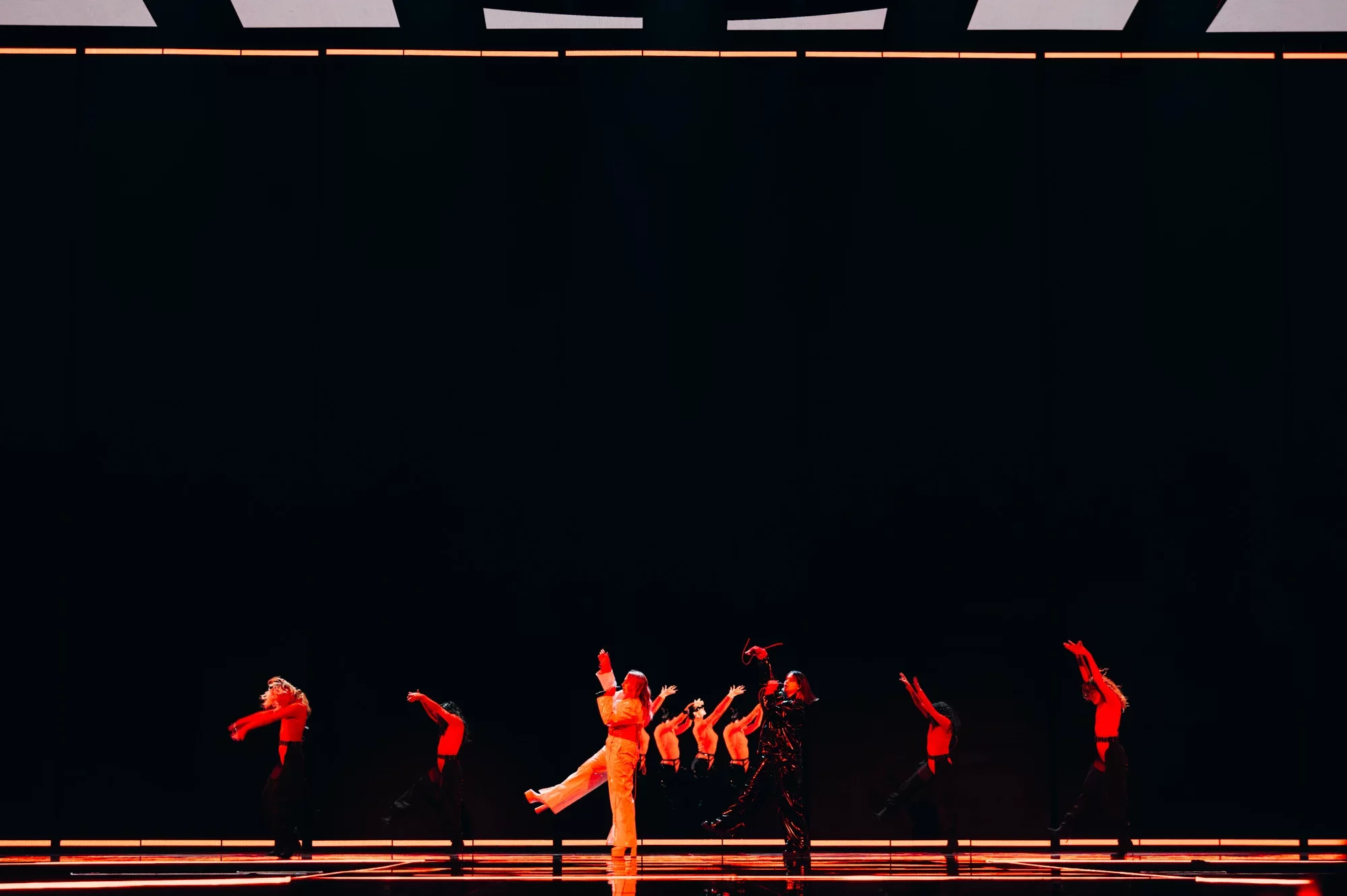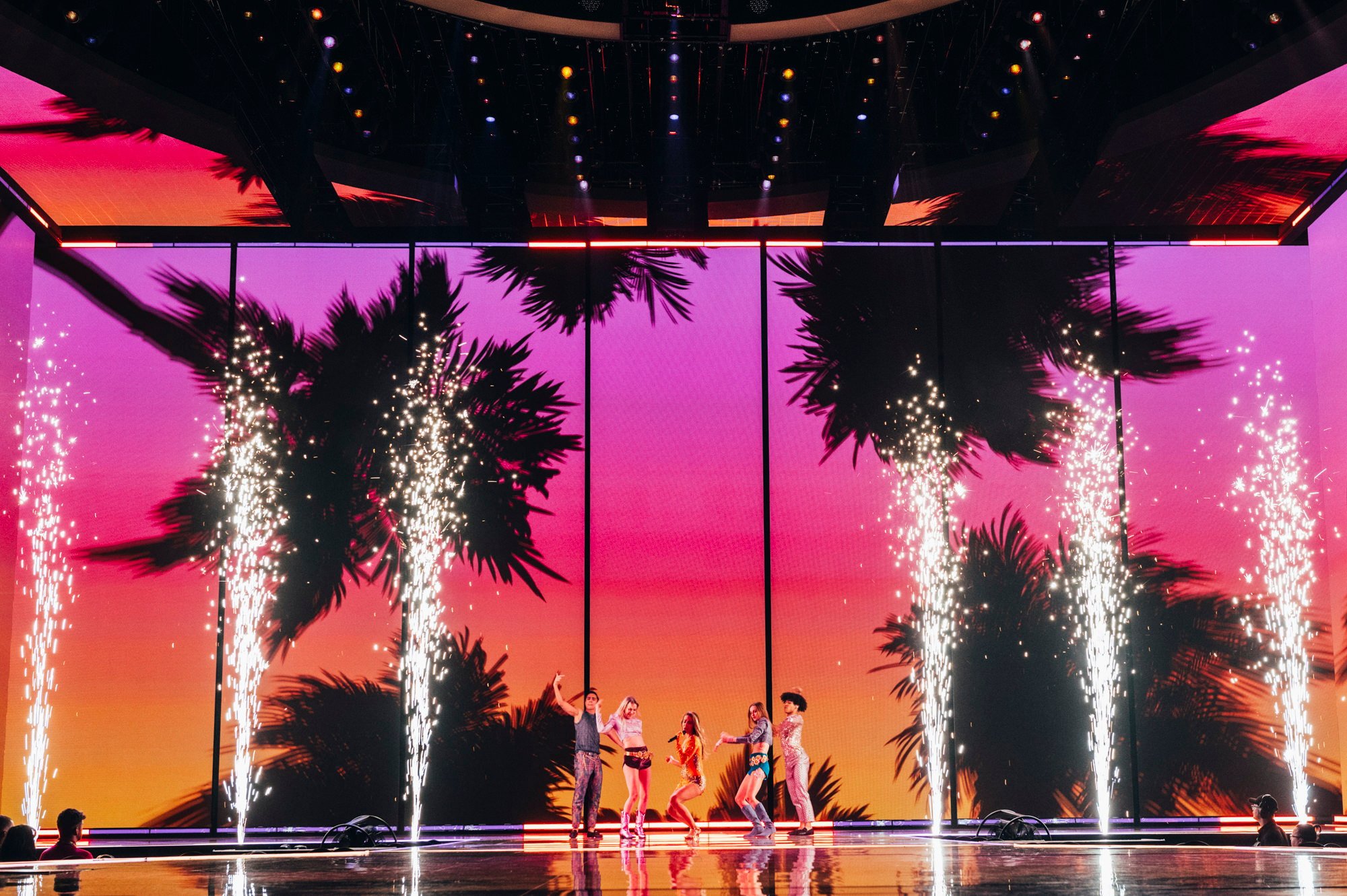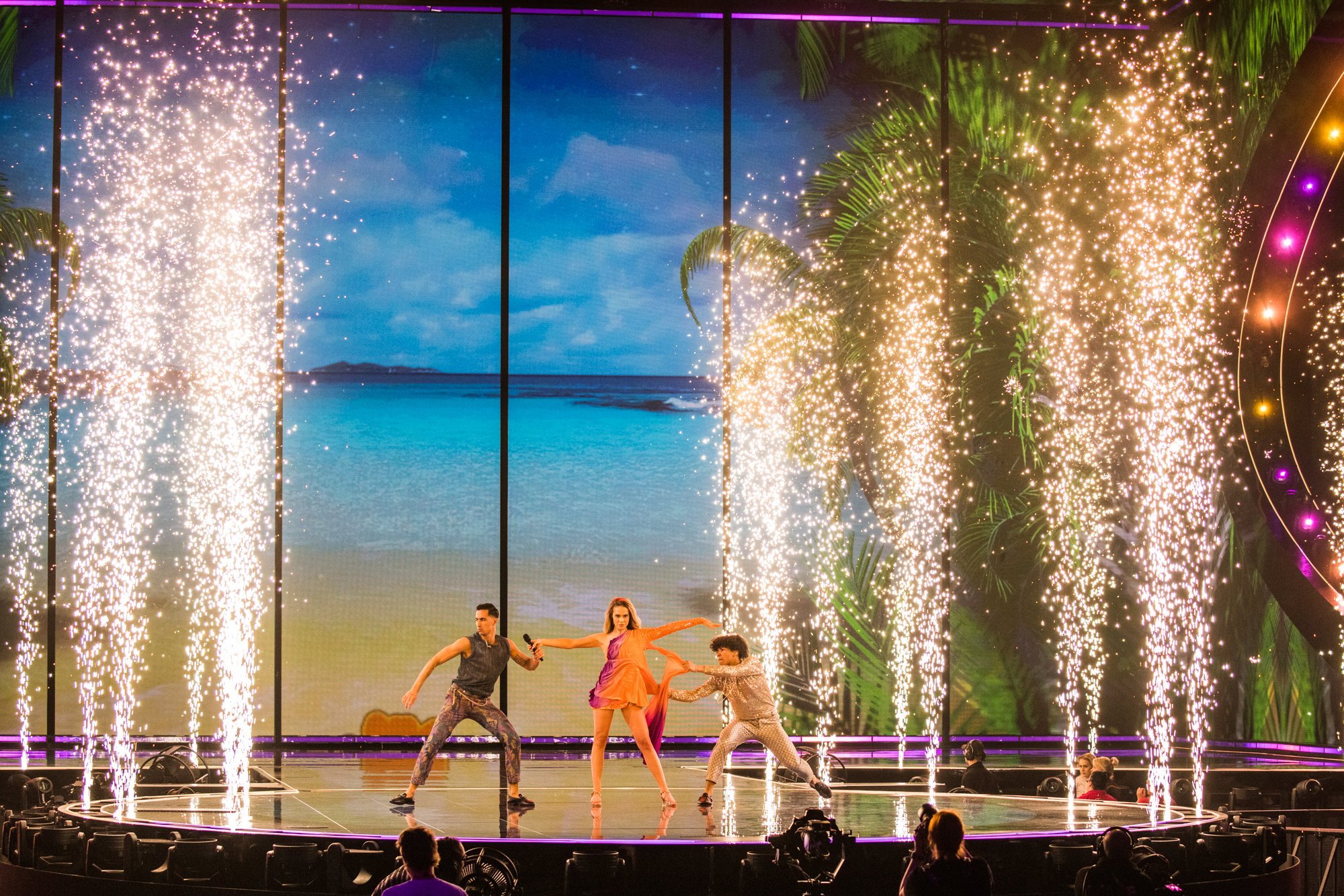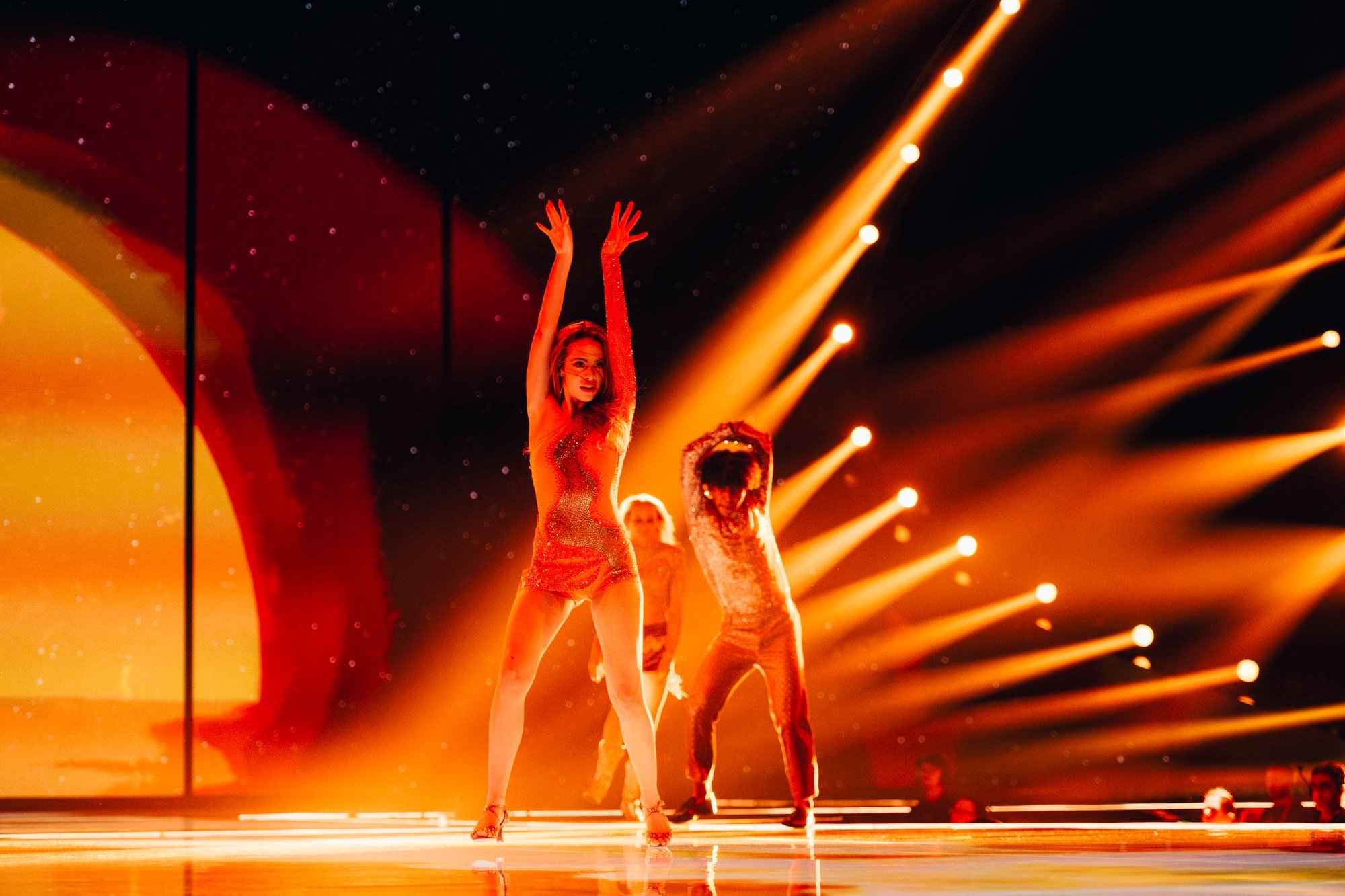 Victor, bu kadar genç yaşta bu kadar büyük bir arenada performans sergileyeceği için gergin olsa da, bunu göstermiyor. LED duvardaki birden fazla dev Victor tarafından destekleniyor, buna hem ses gücü hem de sahnedeki harika enerjisi de ekleniyor. İmzalı dans hareketi, önümüzdeki Perşembe günü arenayı zıplatacak. Ed Sheeran, onun müzikal olarak örnek aldığı biridir ve What They Say’da Sheeran havasını kesinlikle hissedebilirsiniz. Kendinden emin ve moral veren bir performans ve Yunan delegasyonu bundan çok memnun olmalı. Performansında duman kullanan ülkelerden biri oldu. Kostüm açısından, dün Theodor’un giydiği aynı şort ve ceket havası var ama daha az sarı.1 point