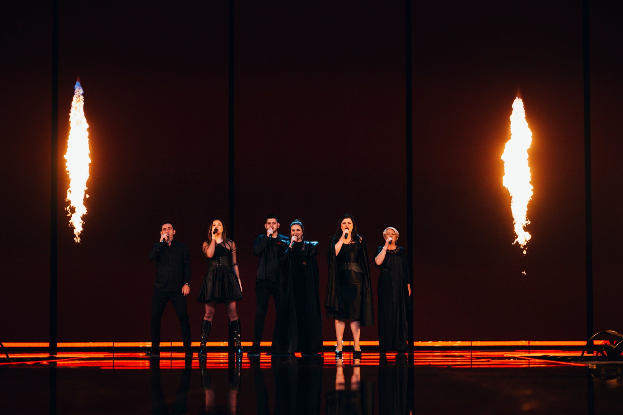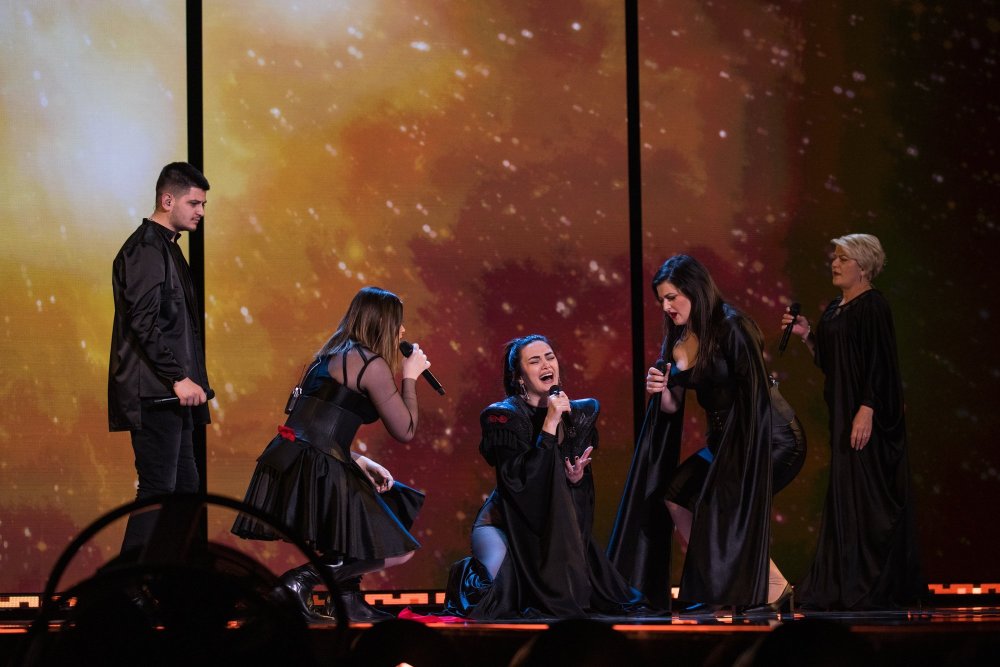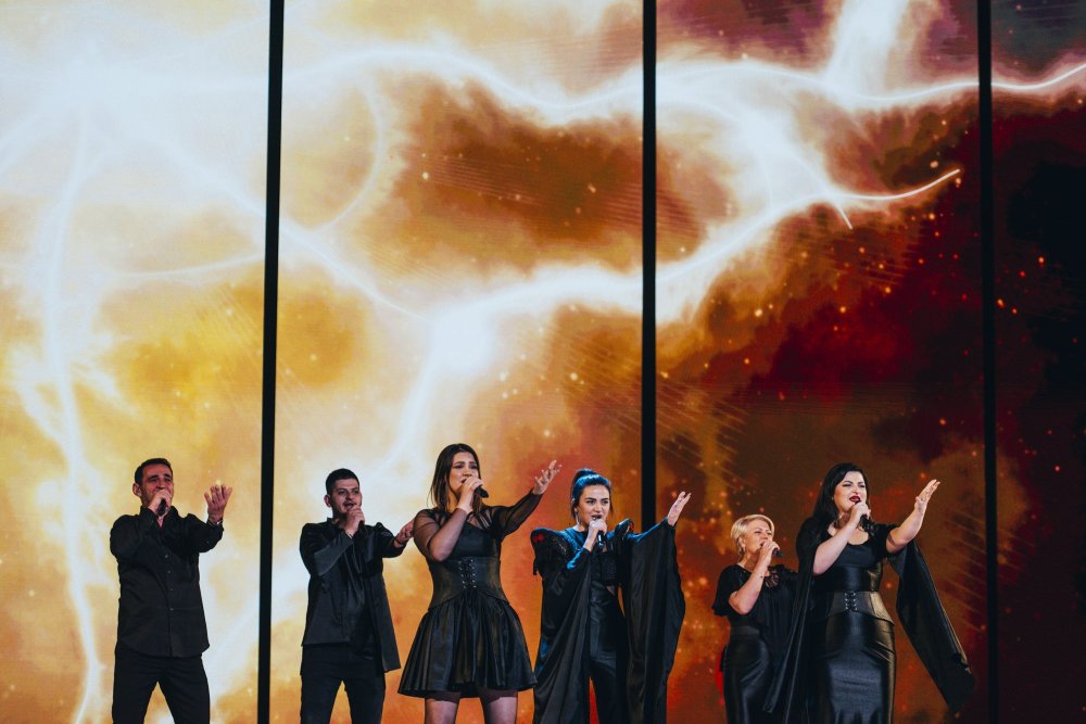 Arnavutluk ilk provasını gerçekleştirdi. Albina muhteşem bir vokalle şarkının açılışını yapıyor. Şarkı güzel harmoniler ile devam ediyor. İsviçre gibi, bunun sahnelenmesi efsanevi yaratıcı Sacha Jean-Baptiste'nin eseri ve LED duvar tamamen Arnavutluk bayrağının siyah ve kırmızı renklerinden oluşuyor. Hepsi sahnede siyah kıyafetler giyiyorlar. Performansın sonunda pyro da kullanılıyor.1 point