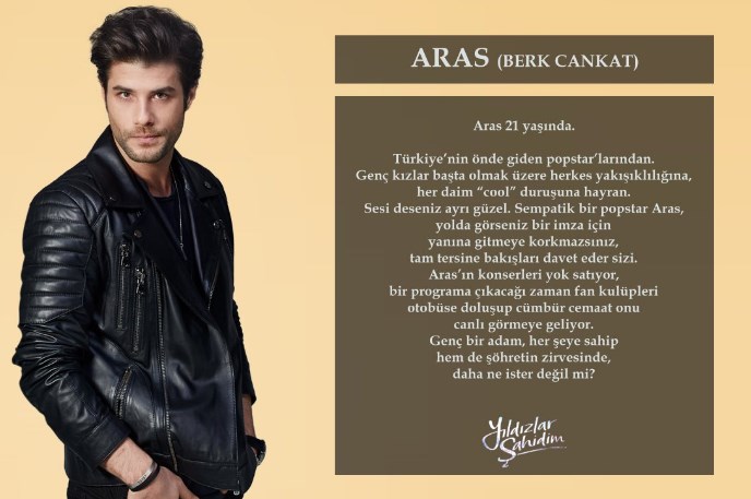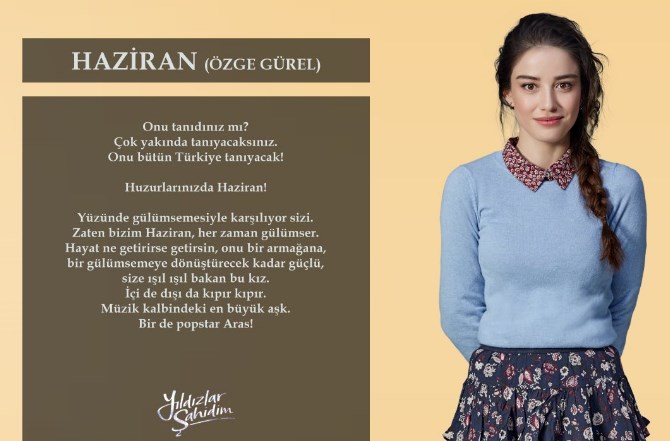 Pınarella Oluşturuldu: 30 Ocak, 2017 Oluşturuldu: 30 Ocak, 2017 Yeni dizi Yıldızlar Şahidim’in başrollerinde Özge Gürel, Berk Cankat, Mesut Akusta ve Canan Ergüder yer alırken, yapımcılığını Süreç Film, yönetmenliğini ise Yıldız Hülya Bilkan üstlenecek. Dizide güzel oyuncu Özge Gürel Haziran karakteri ile mikrofon başına geçecek. Erkek başrol oyuncusu Berk Cankat ise Popstar Aras karakterine hayat verecek. Yıldızlar Şahidim ne zaman hangi kanalda: 27 Ocak 2017 Cuma günü ilk bölümünden itibaren Star Tv ekranlarında yayınlanacak olan yeni dizi her hafta cuma günü sizlerle olacak Yıldızlar Şahidim Oyuncuları Özge Gürel (Haziran): İstanbul doğumlu Gürel 5 şubat 1987 tarihinde dünyaya gelmiştir. Silivri’de liseyi bitirdikten sonra oyunculuk dersleri alan Gürel, Beykent Üniversitesi Uluslararası Ticaret bölümünden mezun olmuştur. Kısa sürede adını duyuran güzel oyuncu ilk rolünü Kızım Nerede adlı dizide Zeynep karakterine hayat vererek aldı. Daha sonra Huzur Sokağı, Muhteşem Yüzyıl ve Medcezir dizilerinde rol almıştır. En son başrol aldığı Kiraz Mevsimi dizisiyle ekranların sevilen yüzü olmayı başardı. Güzel oyuncu Yıldızların Altında dizisinde Haziran karakterini canlandıracak. Berk Cankat (Aras): 9 Mayıs 1984 Ankara doğumlu oyuncudur. İlk olarak Sana Bir Sır Vereceğim dizisinde yan rollerden biri olan Savaş karakterini canlandırmıştır. Güzel Köylü dizisinde başrollerden biri olan Cemal karakteri ile adını herkese duyurmuştur. Son olarak Muhteşem Yüzyıl: Kösem dizisinde İskender rolü ile izleyici karşısına çıkmıştır. Yakışıklı oyuncu dizide Aras karakterini canlandıracak. Canan Ergüder (Zeynep): 15 Temmuz 1977 İstanbul doğumlu oyuncudur. Behzat Ç. Bir Ankara Polisiyesi dizisindeki savcı Esra rolü ile tanımaya başladığımız başarılı oyuncu Güllerin Savaşı dizisindeki Gülfem rolü ile de adını herkese duyurmayı başarmıştır. Ayrıca Binbir Gece ile Bıçak Sırtı dizilerinde de rol almıştır. Mesut Akusta (Fikret): Türk tiyatro, dizi ve sinema oyuncusu 22 Şubat 1964 Konya doğumludur. Kariyeri boyunca bir çok dizi ve sinema filmlerinde rol alan usta oyuncu Kara Melek, Deli Yürek, Kurtlar Vadisi Pusu ve Ezel gibi dizilerde adını duyurdu. Deneyimli oyuncu son olarak Karagül adlı dizide uzun süre rol alarak ününe ün kattı. Gamze Karaduman (Asuman); 1 Ocak 1987 yılında İstanbul’da dünyaya gelen Türk oyuncu, Mimar Sinan Üniversitesi Devlet Konservatuvarı mezunlarındandır. Oyunculuk kariyerine Avrupa Yakası ile başlayan başarılı oyuncu, daha sonra Bıçak Sırtı ve Aramızda Kalsın dizilerinde rol aldı. Yılmaz Gruda (Ragıp); 14 Temmuz 1930 İstanbul doğumlu Türk dizi ve sinema oyuncusudur. Yeşilçamın usta oyuncularından Yılmaz Gruda, en son Mutlu Ol Yeter isimli televizyon dizisinde rol aldı. Özge Sevince (Gülçin); Türk oyuncu ve sunucu, 8 Ekim 1986 yılında İstanbul’da dünyaya geldi. Üniversite eğitimini Marmara Üniversitesi’nde aldı. Ekol Drama Sanat Evinde oyunculuk üzerine özel dersler aldı. Televizyon dünyasında sırasıyla Ihlamurlar Altında, Suskunlar, Osmanlı’da Derin Devlet, Gönül Hırsızı, Emanet ve Sevda Kuşun Kanadında dizilerinde rol aldı. Ceren Soylu (Elmas); 21 Mart 1970 İstanbul doğumlu Türk dizi ve sinema oyuncusudur. İstanbul Üniversitesi Ön Asya Arkeoloji bölümü ve Mimar Sinan Müzikal Opera bölümü mezunudur. Televizyon dünyasında sırasıyla Hayat Bilgisi, Pis Yedili, İşler Güçler ve Günebakan isimli dizi yapımlarında yer aldı. Özgür Emre Yıldırım (Kubilay); Türk oyuncu 26 Ekim 1983 yılında İstanbul’da doğdu. Müjdat Gezen sanat merkezinde oyunculuk dersleri aldı. Televizyon dünyasında sırasıyla Elde Var Hayat, Karadayı ve Aile İşi isimli dizi projelerinde yer aldı. Dila Danışman (Lila); Türk dizi ve sinema oyuncusu, 13 Eylül 1988 İstanbul doğumludur. Muhteşem Yüzyıl dizisinde ilk rolünü alan güzel oyuncu ardından Sana Bir Sır Vereceğim,Ankara’nın Dikmeni, Sen Benimsin ve Çifte Saadet dizi kadrosunda yer aldı. Melih Selçuk (Kürşat); Başarılı oyuncu 7 şubat 1984 senesinde Mardin’de dünyaya geldi. Halen üniversite eğitimine Boğaziçi Üniversitesi İşletme Bölümünde devam etmektedir. Adını Feriha Koydum isimli televizyon dizisinde rol aldığı sürede ekranlarda tanındı. Berkan Bulut (Koray); 9 Temmuz 1988 senesinde İstanbul’da dünyaya gelen Bulut, Haliç Üniversitesi Konservatuarı Tiyatro Bölümü mezunlarındandır. Oyunculuk kariyeri boyunca 6 Mantı, Bir Zamanlar Osmanlı Kıyam, Suskunlar ve Beyaz Yalan dizilerinde rol aldı. İrem Kahyaoğlu (Mebruke); Türk oyuncu 1 Ocak 1980 yılında İzmit’de doğdu. Üniversite eğitimini Mimar Sinan Üniversitesi Devlet Konservatuarı Tiyatro Ana Sanat Dalı bölümünde aldı. Kariyeri boyuncu Aliye, Aynı Çatı Altında ve Karadayı isimli dizilerde rol aldı. Aslı İnandık (Feraye); Necati Kutlu (TEO); Edip Tepeli (Harun); 1 Ocak 1989 yılında İzmir’de dünyaya gelen Türk tiyatro ve dizi oyuncusudur. Sahne aldığı tiyatro oyunlarıyla iki kez En İyi Yardımcı Erkek Oyuncu ödülünü aday gösterilmiştir. Televizyon dünyasında ise Kıvanç Tatlıtuğ ve Zeynep Farah Abdullah’ın başrollerinde yer aldığı Kurt Seyit ve Şura isimli dizide rol aldı.