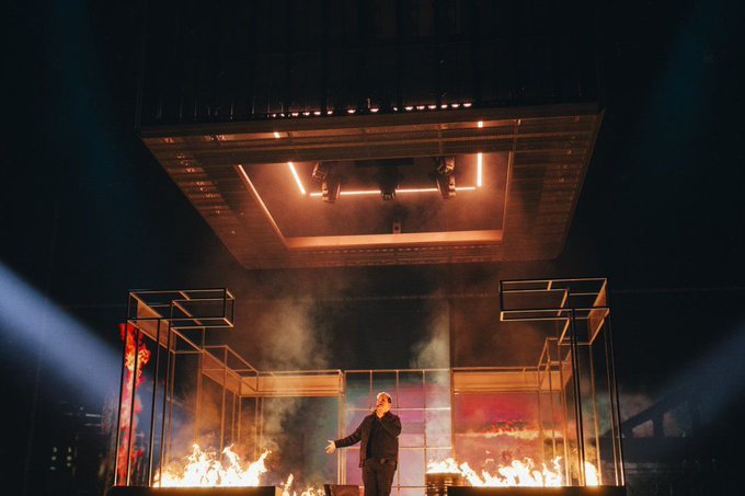 Set, göksel bir kubeden inerek tavan oluşturmak üzere sahnedeki orta küpün altına yerleştirilmiş durumda, ancak şarkının sonlarına doğru tüm set sahneden alınıyor ve sahnenin ortasında sadece ISAAK kalıyor, siyah bir takım elbise giymiş ve dört vokalistle çevrelenmiş.